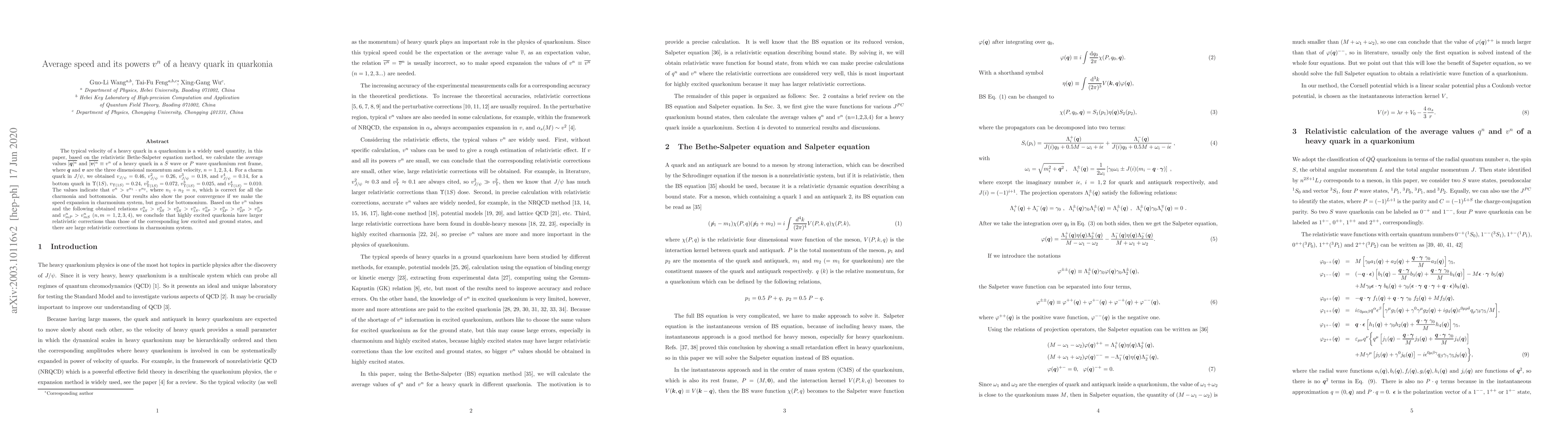 This paper calculates the average speeds and their powers of heavy quarks in quarkonia using the relativistic Bethe-Salpeter equation, finding that highly excited quarkonia exhibit larger relativistic corrections compared to lower excited states, with charmonium systems showing significant relativistic effects.