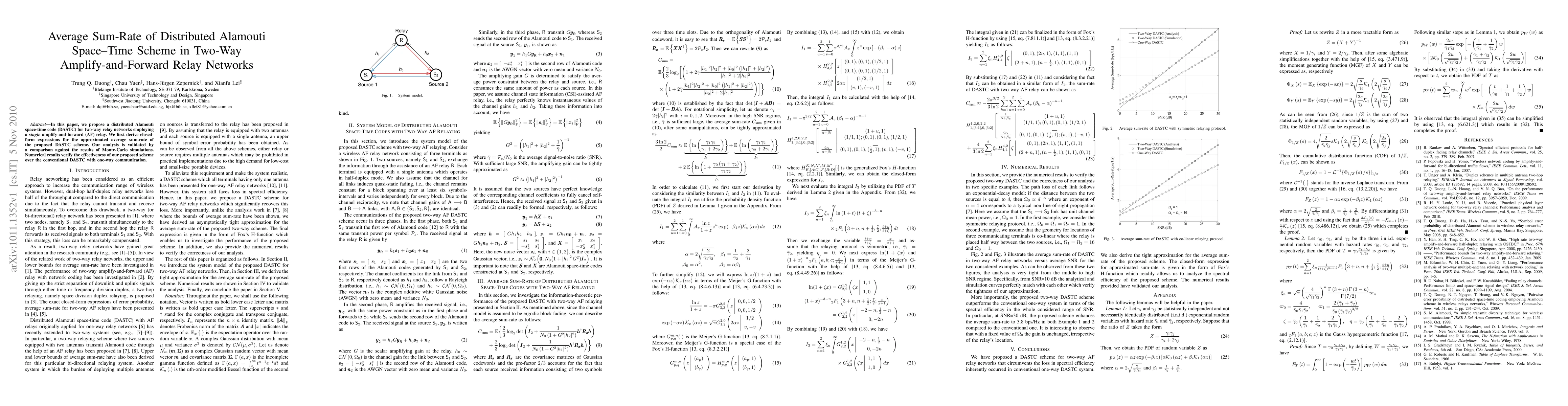 In this paper, we propose a distributed Alamouti space-time code (DASTC) for two-way relay networks employing a single amplify-and-forward (AF) relay. We first derive closed-form expressions for the approximated average sum-rate of the proposed DASTC scheme. Our analysis is validated by a comparison against the results of Monte-Carlo simulations. Numerical results verify the effectiveness of our proposed scheme over the conventional DASTC with one-way communication.