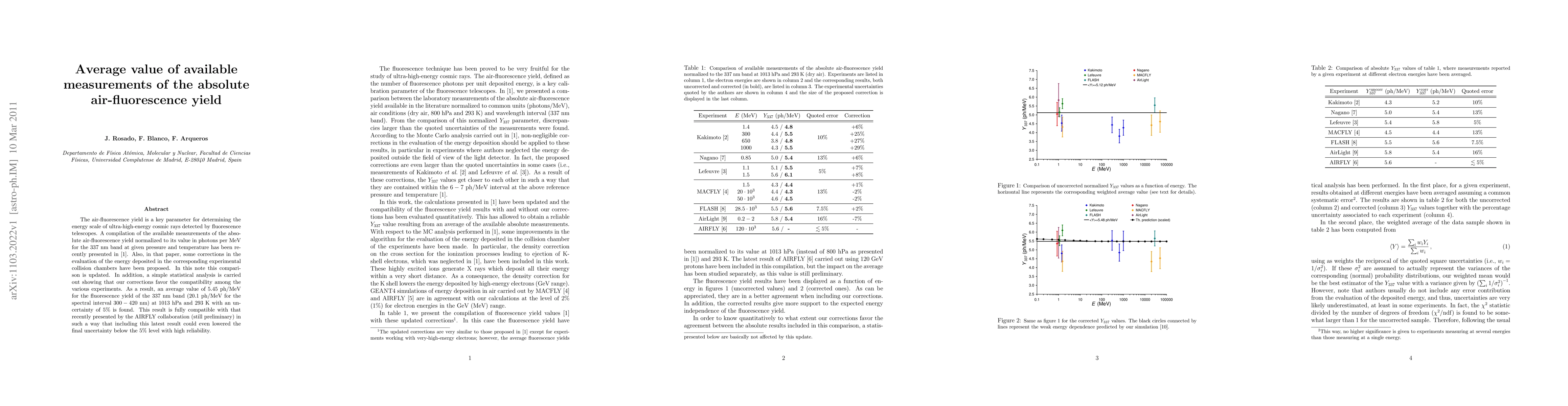 The air-fluorescence yield is a key parameter for determining the energy scale of ultra-high-energy cosmic rays detected by fluorescence telescopes. A compilation of the available measurements of the absolute air-fluorescence yield normalized to its value in photons per MeV for the 337 nm band at given pressure and temperature has been recently presented in Ref. [1]. Also, in that paper, some corrections in the evaluation of the energy deposited in the corresponding experimental collision chambers have been proposed. In this note this comparison is updated. In addition, a simple statistical analysis is carried out showing that our corrections favor the compatibility among the various experiments. As a result, an average value of 5.45 ph/MeV for the fluorescence yield of the 337 nm band (20.1 ph/MeV for the spectral interval 300-420 nm) at 1013 hPa and 293 K with an uncertainty of 5% is found. This result is fully compatible with that recently presented by the AIRFLY collaboration (still preliminary) in such a way that including this latest result could even lowered the final uncertainty below the 5% level with high reliability.