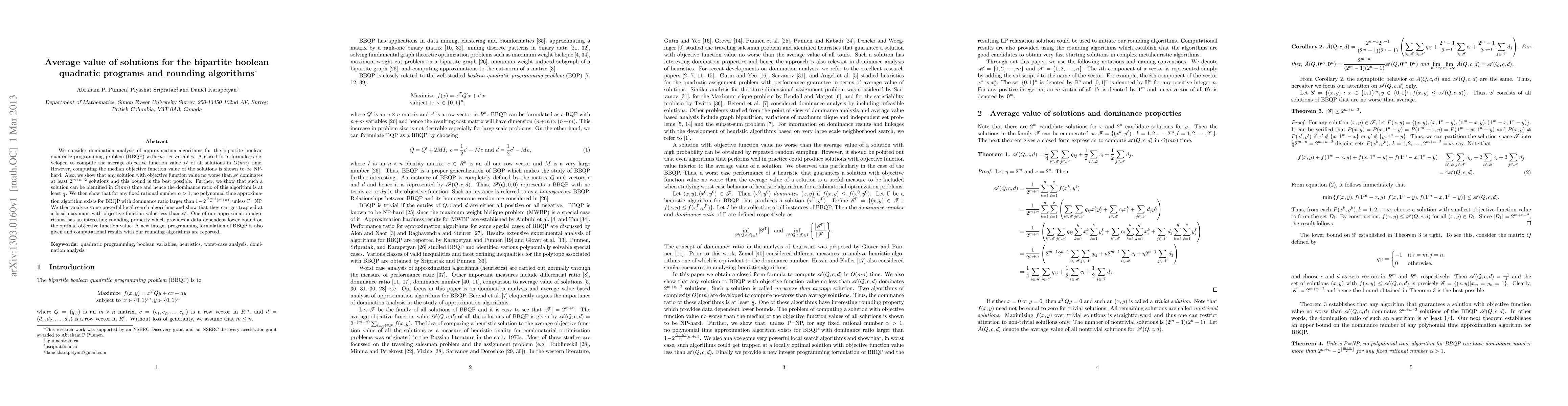 Researchers developed a formula to compute the average objective function value of solutions for bipartite boolean quadratic programs, finding that certain solutions can dominate up to 2^m*n-2 other solutions.