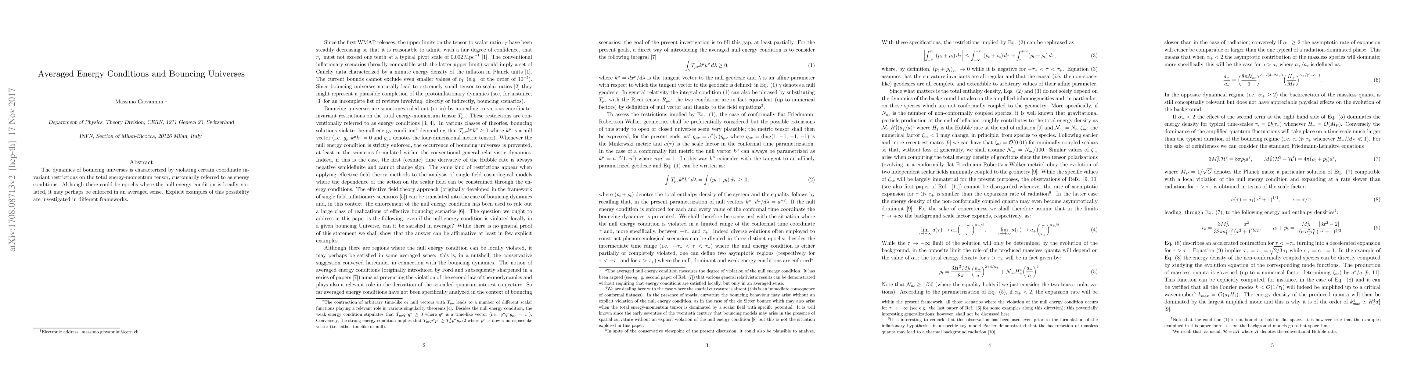 This paper explores the dynamics of bouncing universes where energy conditions are violated, investigating whether these violations can be averaged out to enforce the null energy condition globally. It provides explicit examples within various theoretical frameworks to demonstrate this possibility.