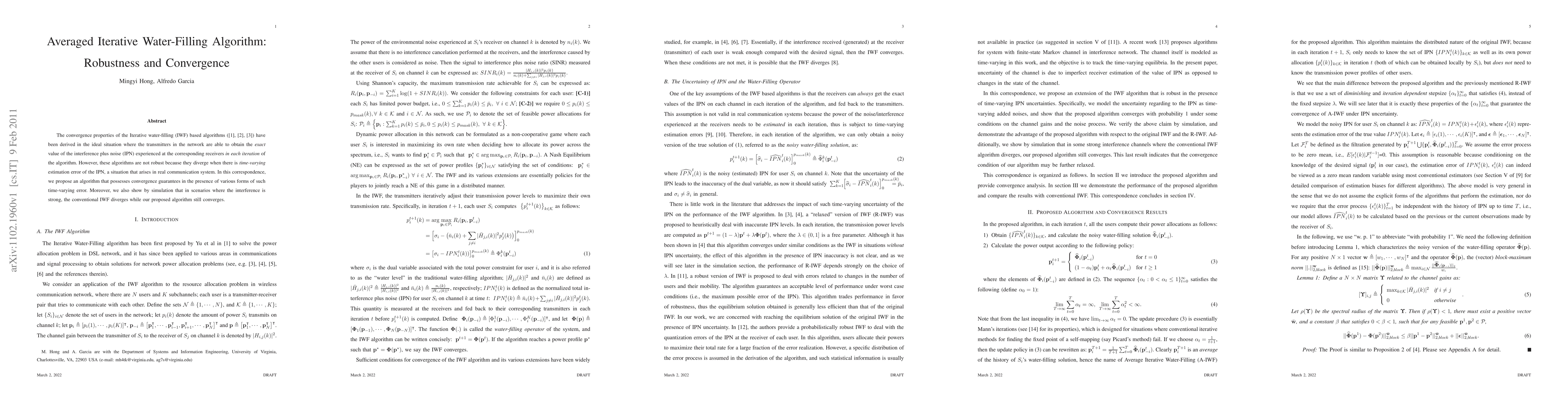 Researchers propose a new algorithm that ensures convergence in wireless networks despite time-varying estimation errors, improving robustness compared to traditional Iterative water-filling algorithms.