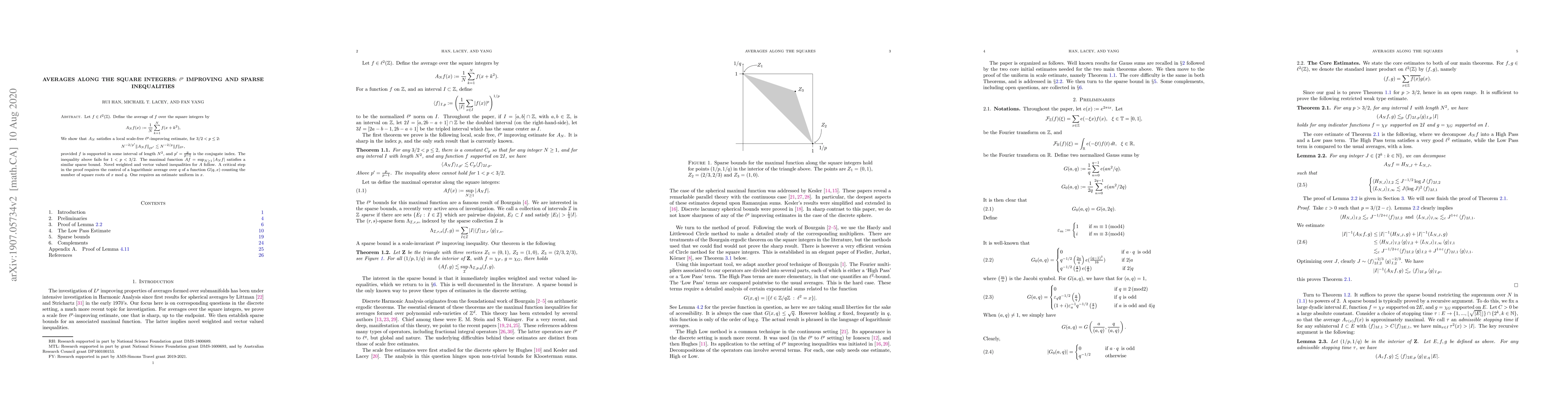 This paper establishes a local scale-free π-p improving estimate for the average of functions over square integers, with implications for sparse inequalities and maximal functions.