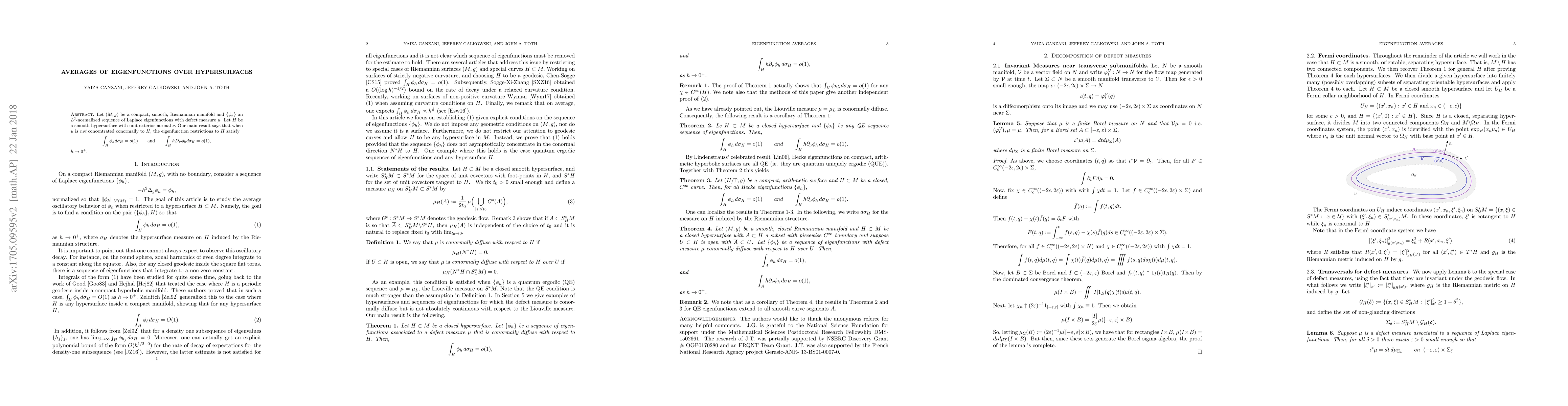 Let $(M,g)$ be a compact, smooth, Riemannian manifold and $\{ \phi_h \}$ an $L^2$-normalized sequence of Laplace eigenfunctions with defect measure $\mu$. Let $H$ be a smooth hypersurface. Our main result says that when $\mu$ is $\textit{not}$ concentrated conormally to $H$, the eigenfunction restrictions to $H$ and the restrictions of their normal derivatives to $H$ have integrals converging to 0 as $h \to 0^+$.