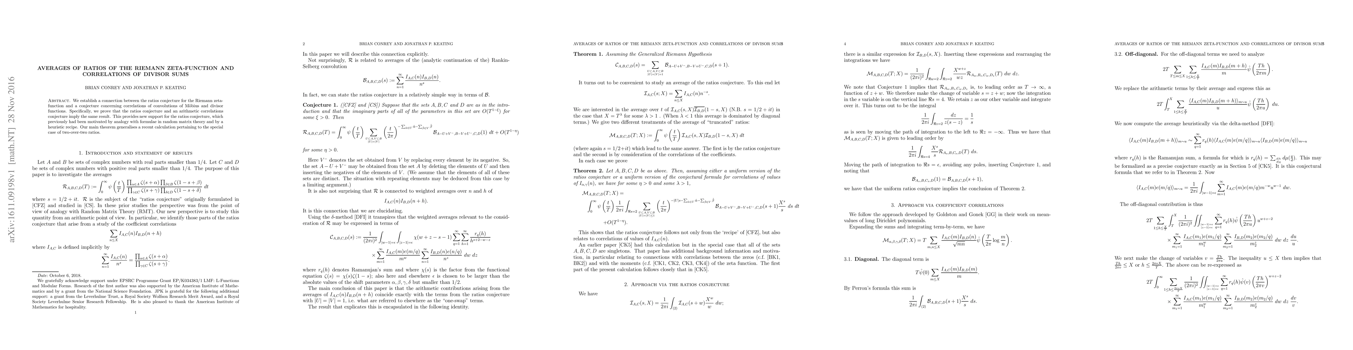 Researchers establish a connection between two number theory conjectures, providing new support for the ratios conjecture related to the Riemann zeta-function.
