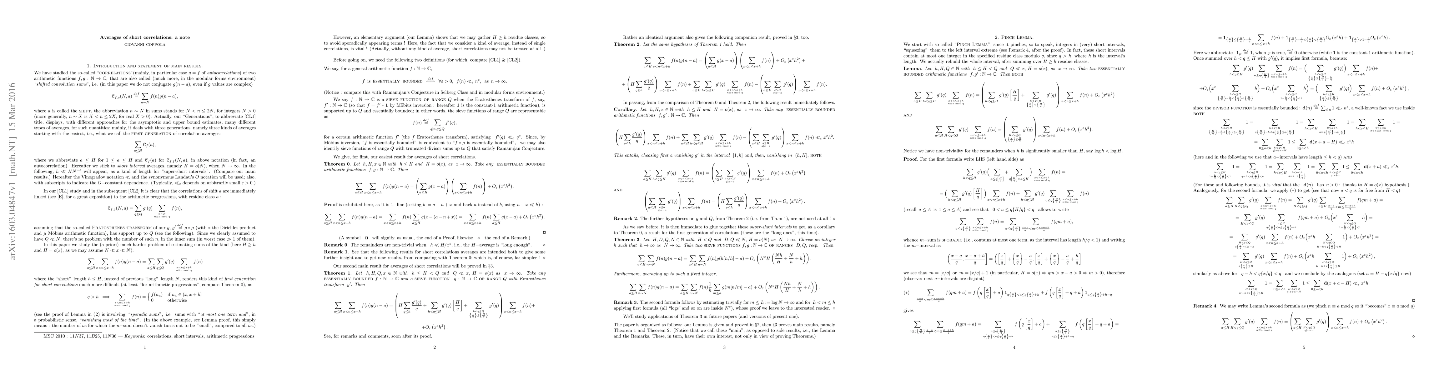We give a completely elementary study for averages of short correlations of so-called sieve functions (a pretty general class of arithmetic functions).