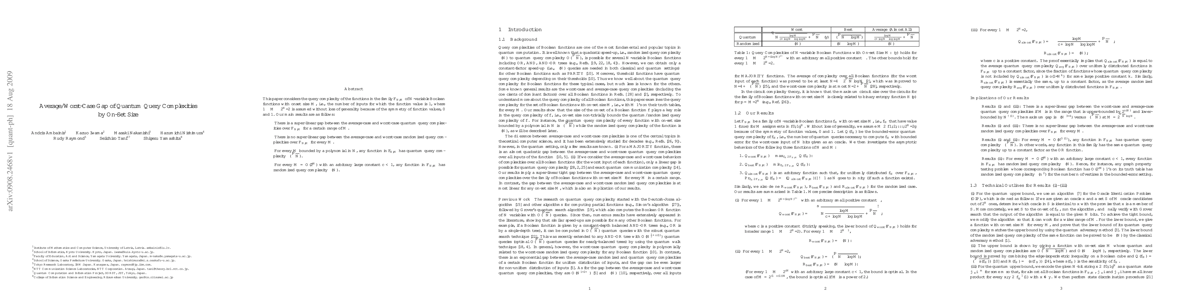 This paper investigates the quantum query complexities of N-variable Boolean functions with a specific onset size M, revealing a super-linear gap between average-case and worst-case quantum complexities for certain M values, while showing no such gap for randomized complexities. It also establishes Theta (sqrt{N}) quantum query complexity for polynomially bounded M and Omega (N) randomized query complexity for exponentially large M.
