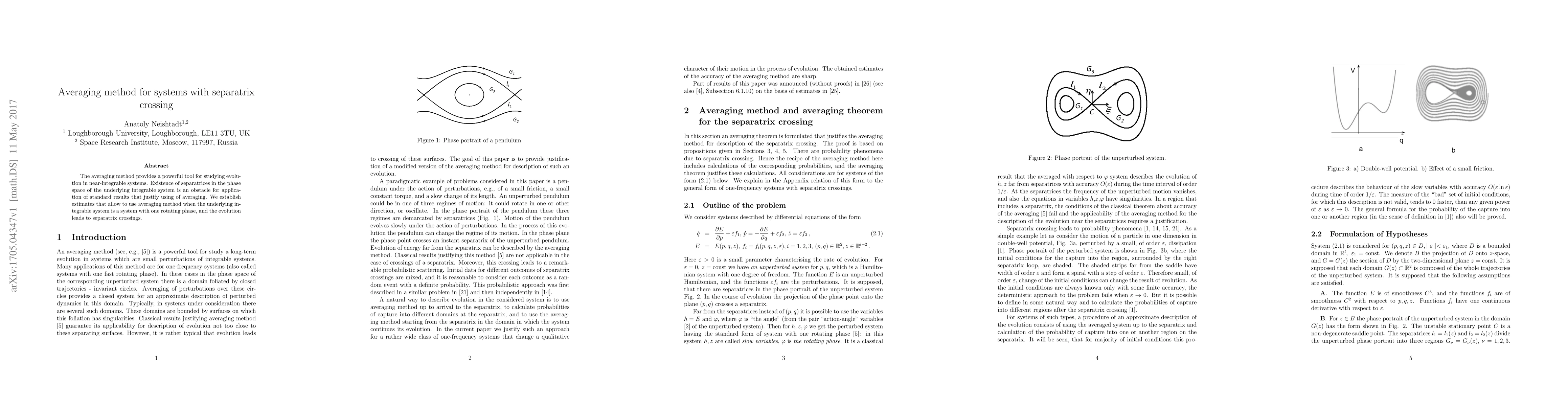 The paper employs the averaging method to study evolution in near-integrable systems, specifically addressing the obstacle posed by separatrices in the phase space of the underlying integrable system.