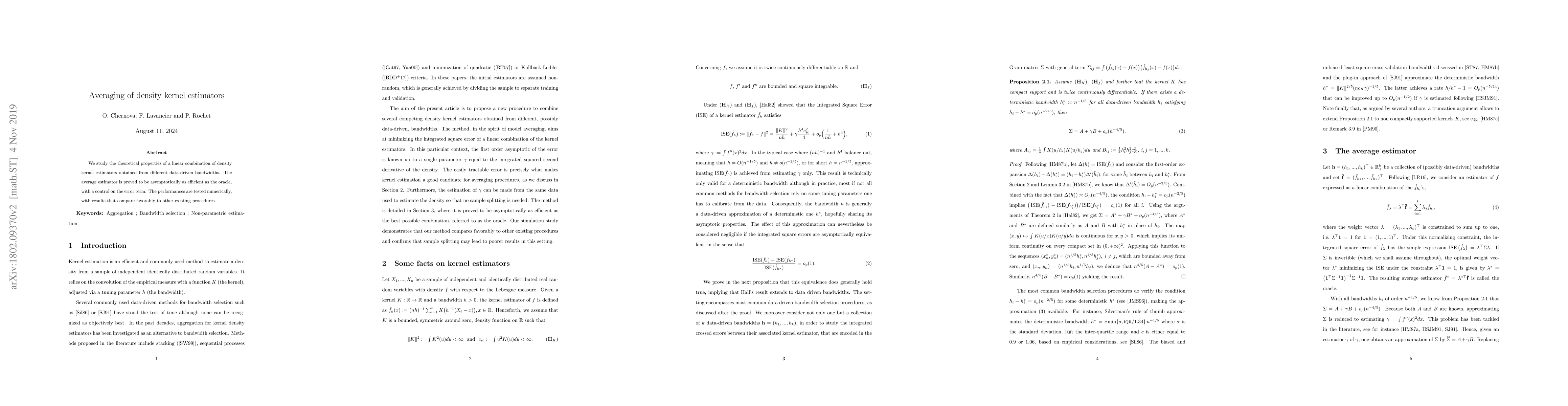 This paper proposes a method for averaging multiple kernel density estimators obtained with different bandwidths, aiming to improve estimation efficiency. The averaging procedure minimizes an approximation of the integrated square error, demonstrating improved performance over individual estimators and competitive results compared to other methods.