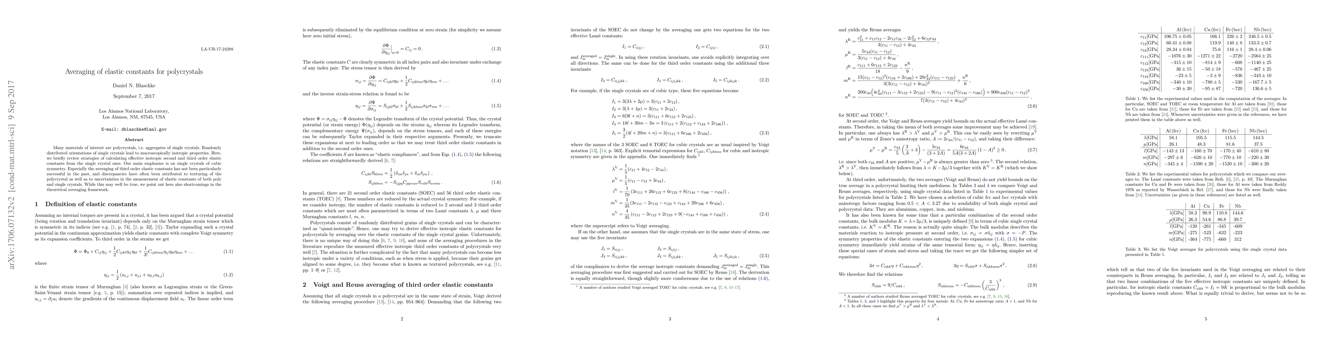 Many materials of interest are polycrystals, i.e. aggregates of single crystals. Randomly distributed orientations of single crystals lead to macroscopically isotropic properties. Here, we briefly review strategies of calculating effective isotropic second and third order elastic constants from the single crystal ones. Our main emphasize is on single crystals of cubic symmetry. Especially the averaging of third order elastic constants has not been particularly successful in the past, and discrepancies have often been attributed to texturing of the polycrystal as well as to uncertainties in the measurement of elastic constants of both poly and single crystals. While this may well be true, we point out here also shortcomings in the theoretical averaging framework.