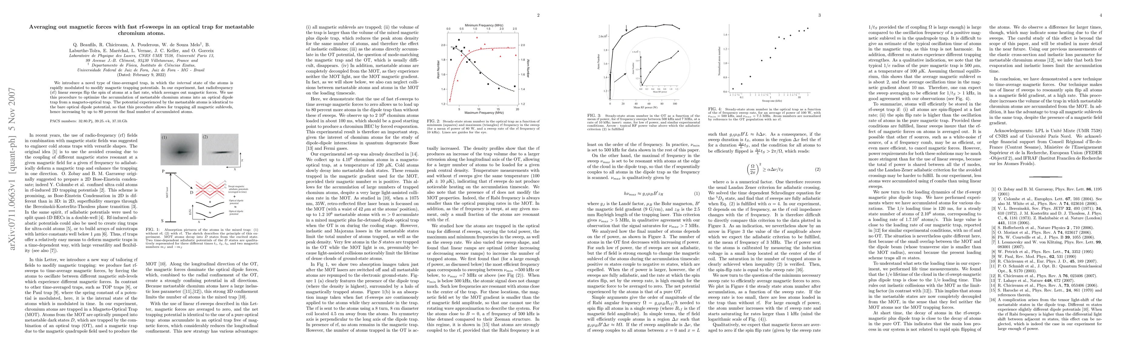 This paper presents a novel method to optimize the trapping of metastable chromium atoms using rapid radiofrequency sweeps in an optical trap, which averages out magnetic forces and increases the accumulation efficiency by up to 80 percent. The technique allows trapping of all magnetic sublevels by modifying magnetic trapping potentials through spin modulation.