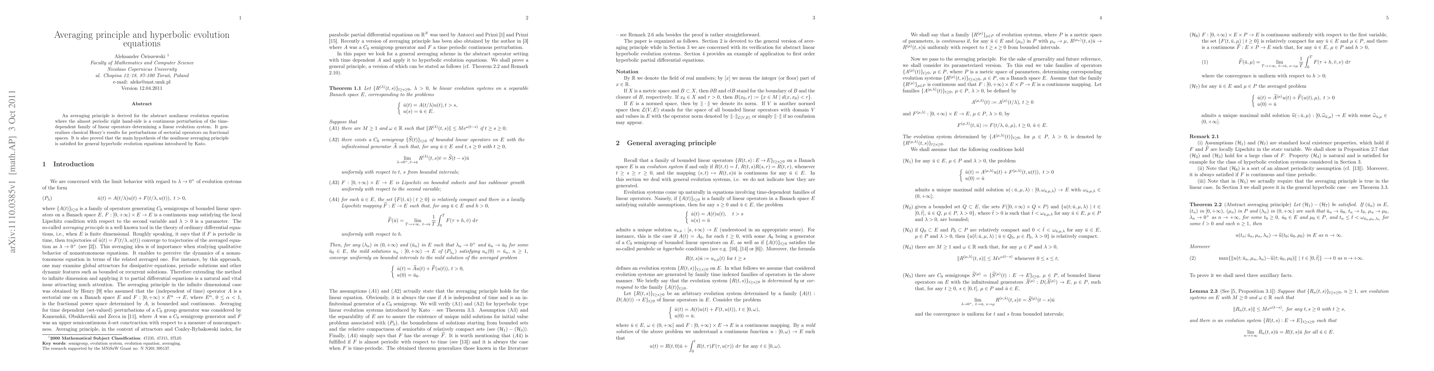 An averaging principle is derived for the abstract nonlinear evolution equation where the almost periodic right hand-side is a continuous perturbation of the time-dependent family of linear operators determining a linear evolution system. It generalizes classical Henry's results for perturbations of sectorial operators on fractional spaces. It is also proved that the main hypothesis of the nonlinear averaging principle is satisfied for general hyperbolic evolution equations introduced by Kato.