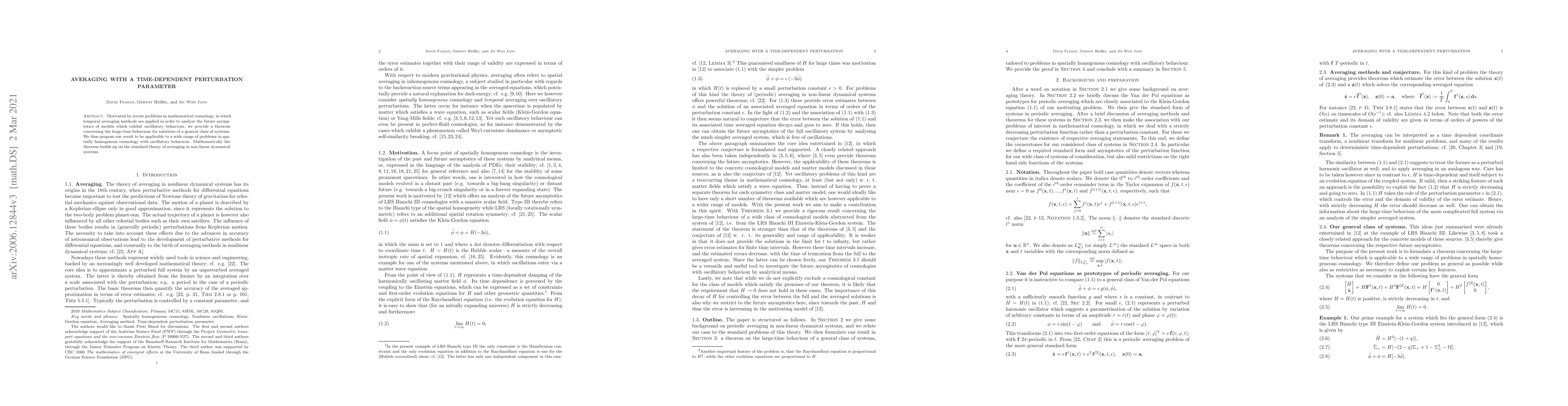This paper presents a theorem on the large-time behavior of solutions for a general class of systems, applicable to spatially homogenous cosmology models with oscillatory behavior. It builds on the theory of averaging in nonlinear dynamical systems, offering insights for mathematical cosmology problems.