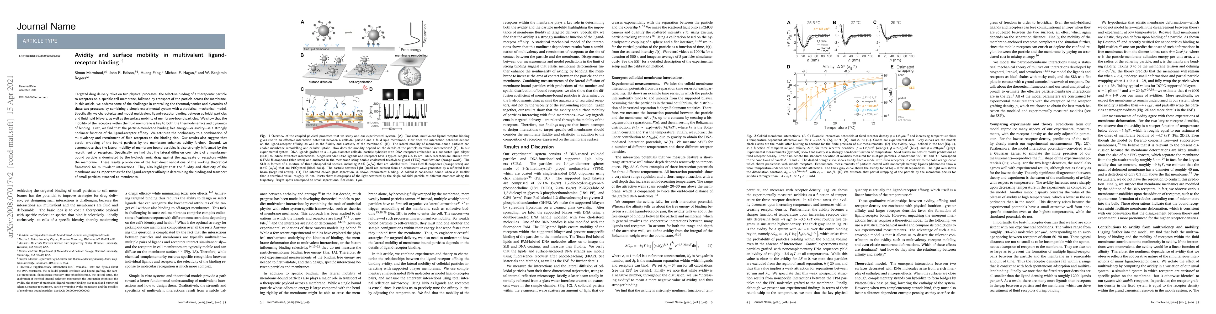 This paper investigates the thermodynamics and dynamics of multivalent ligand-receptor binding and the surface mobility of membrane-bound particles, demonstrating that receptor mobility within the fluid membrane significantly influences both binding avidity and lateral diffusion. The study validates theoretical frameworks for multivalent interactions and emphasizes the importance of membrane fluidity and elasticity in particle binding and transport.