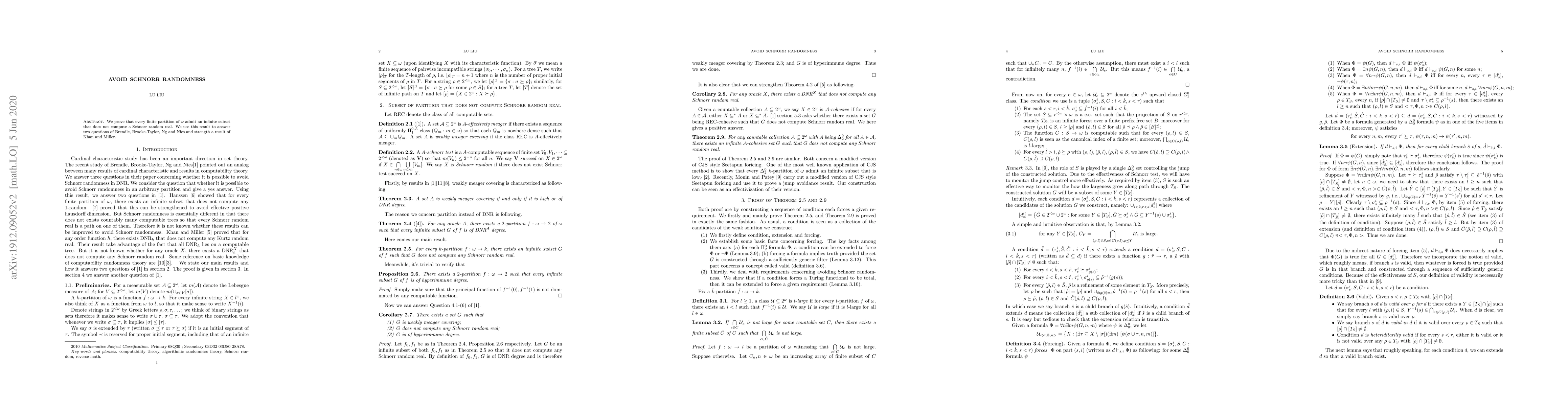 The paper introduces a forcing method to demonstrate the existence of infinite subsets of ω that avoid computing Schnorr random reals, along with detailed analysis of forcing conditions for Turing functionals.