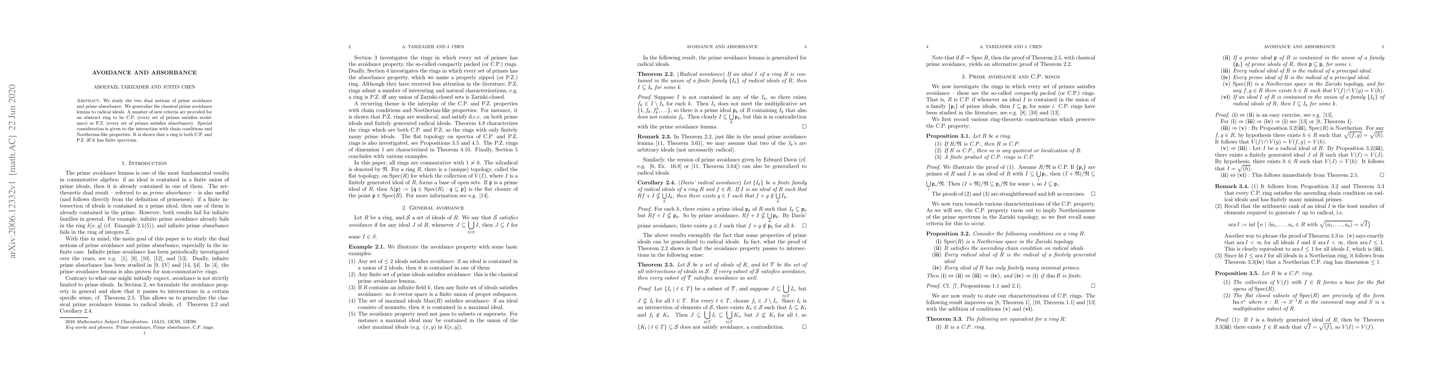 This paper explores the concepts of prime avoidance and prime absorbance in ring theory, generalizing the prime avoidance lemma to radical ideals. It establishes criteria for a ring to exhibit these properties and highlights the significance of chain conditions and Noetherian-like properties, concluding that a ring is both C.P. and P.Z. if and only if it has a finite spectrum.