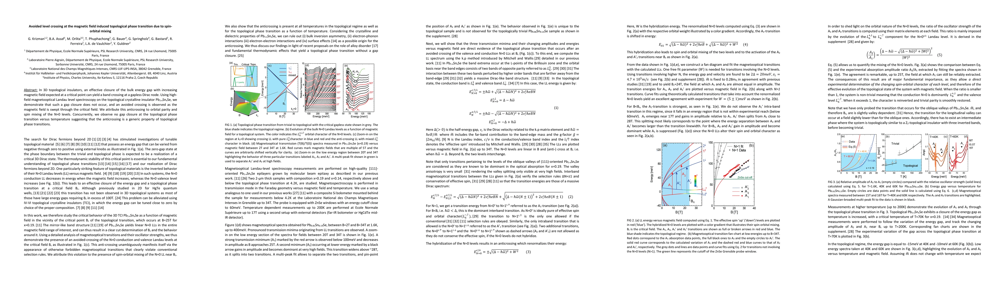 This study investigates the topological phase transition in Pb1-xSnxSe, finding that an expected energy gap closure under magnetic field does not occur, instead showing an avoided level crossing due to spin-orbital mixing. The observed anticrossing suggests this phenomenon is a general feature of topological phase transitions.