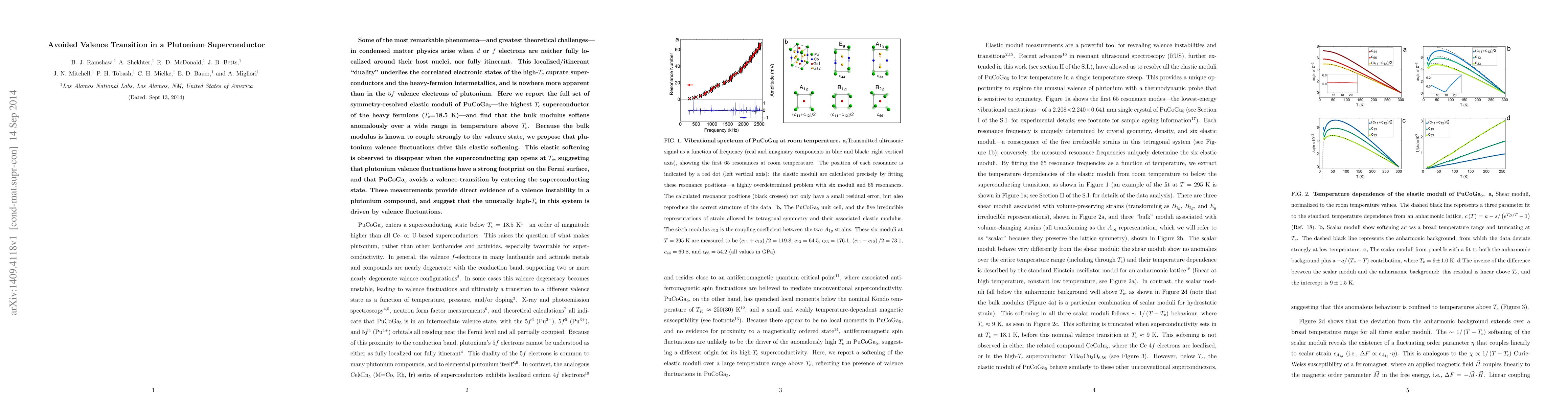 Some of the most remarkable phenomena---and greatest theoretical challenges---in condensed matter physics arise when $d$ or $f$ electrons are neither fully localized around their host nuclei, nor fully itinerant. This localized/itinerant "duality" underlies the correlated electronic states of the high-$T_c$ cuprate superconductors and the heavy-fermion intermetallics, and is nowhere more apparent than in the $5f$ valence electrons of plutonium. Here we report the full set of symmetry-resolved elastic moduli of $PuCoGa_5$---the highest $T_c$ superconductor of the heavy fermions ($T_c$=18.5 K)---and find that the bulk modulus softens anomalously over a wide range in temperature above $T_c$. Because the bulk modulus is known to couple strongly to the valence state, we propose that plutonium valence fluctuations drive this elastic softening. This elastic softening is observed to disappear when the superconducting gap opens at $T_c$, suggesting that plutonium valence fluctuations have a strong footprint on the Fermi surface, and that $PuCoGa_5$ avoids a valence-transition by entering the superconducting state. These measurements provide direct evidence of a valence instability in a plutonium compound, and suggest that the unusually high-$T_c$ in this system is driven by valence fluctuations.