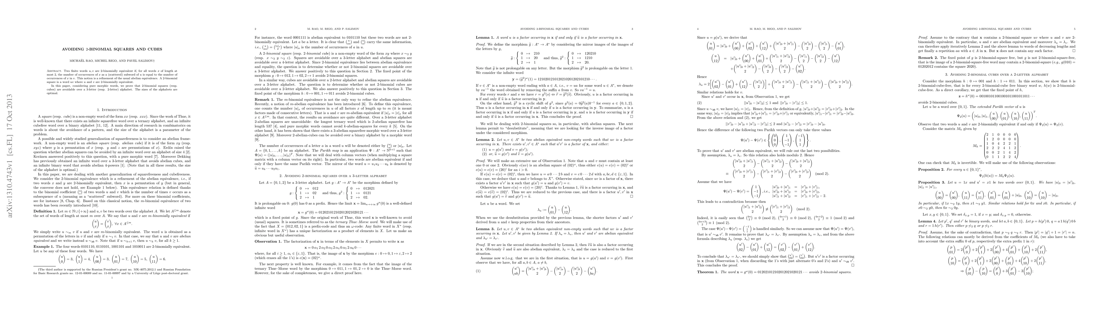 Two finite words $u,v$ are 2-binomially equivalent if, for all words $x$ of length at most 2, the number of occurrences of $x$ as a (scattered) subword of $u$ is equal to the number of occurrences of $x$ in $v$. This notion is a refinement of the usual abelian equivalence. A 2-binomial square is a word $uv$ where $u$ and $v$ are 2-binomially equivalent. In this paper, considering pure morphic words, we prove that 2-binomial squares (resp. cubes) are avoidable over a 3-letter (resp. 2-letter) alphabet. The sizes of the alphabets are optimal.