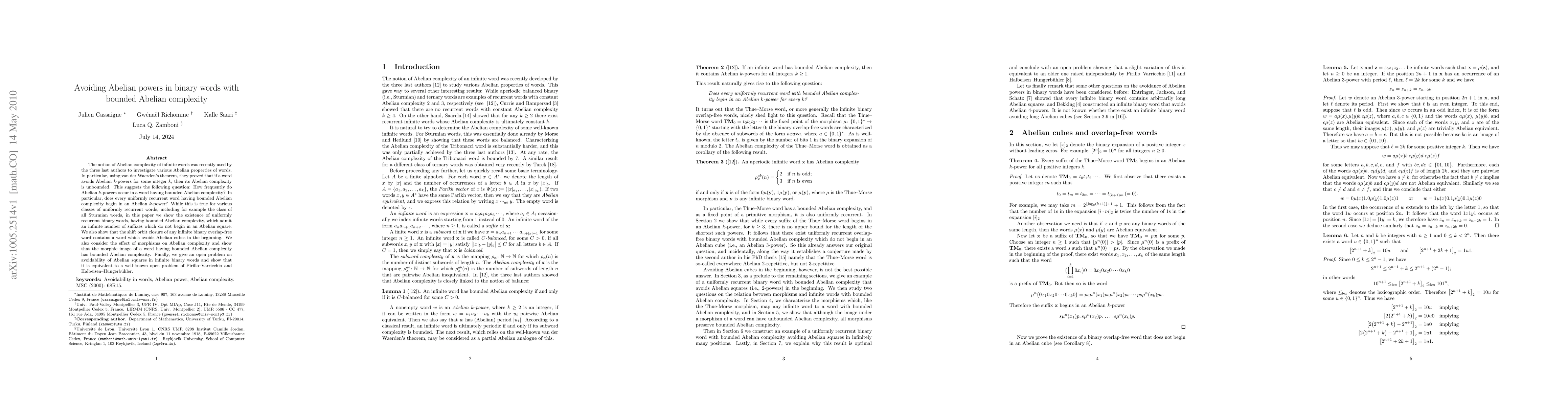 This paper explores the occurrence of Abelian $k$-powers in binary words with bounded Abelian complexity, proving the existence of uniformly recurrent binary words with bounded complexity that do not start with Abelian squares infinitely often. It also examines the effect of morphisms on Abelian complexity and relates the avoidability of Abelian squares in infinite binary words to a known open problem.