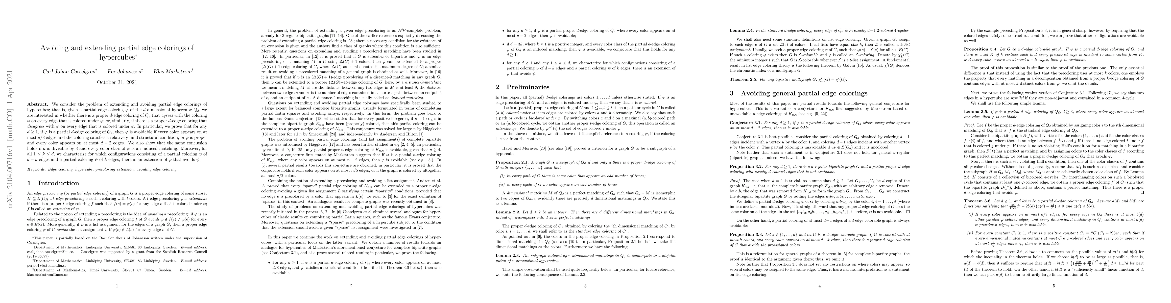 The paper analyzes the problem of extending and avoiding partial edge colorings of hypercubes, providing conditions under which a partial coloring can be extended to a proper coloring or avoided entirely. It uses a combination of graph theory and combinatorics, including the examination of bipartite graphs and the application of Hall's matching theorem.