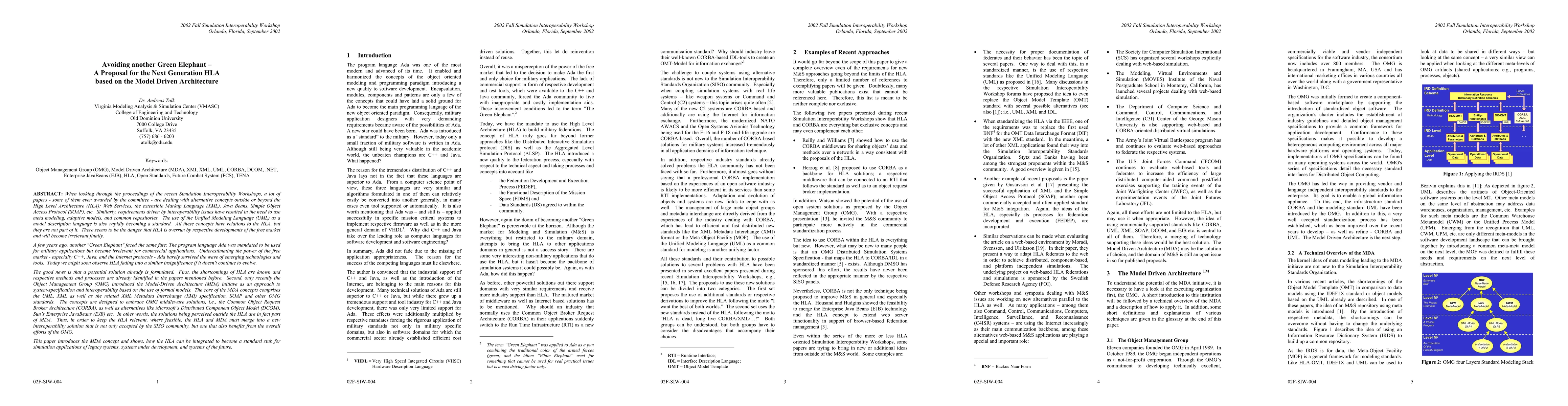 When looking through the proceedings of the recent Simulation Interoperability Workshops, a lot of papers - some of them even awarded by the committee - are dealing with alternative concepts outside or beyond the High Level Architecture (HLA): Web Services, the extensible Markup Language (XML), Java Beans, Simple Object Access Protocol (SOAP), etc. Similarly, requirements driven by interoperability issues have resulted in the need to use meta modeling, adaptive models, and common repositories. The use of the Unified Modeling Language (UML) as a model description language is also rapidly becoming a standard. All these concepts have relations to the HLA, but they are not part of it. There seems to be the danger that HLA is overrun by respective developments of the free market and will become irrelevant finally. ... This paper introduces the MDA concept and shows, how the HLA can be integrated to become a standard stub for simulation applications of legacy systems, systems under development, and systems of the future.