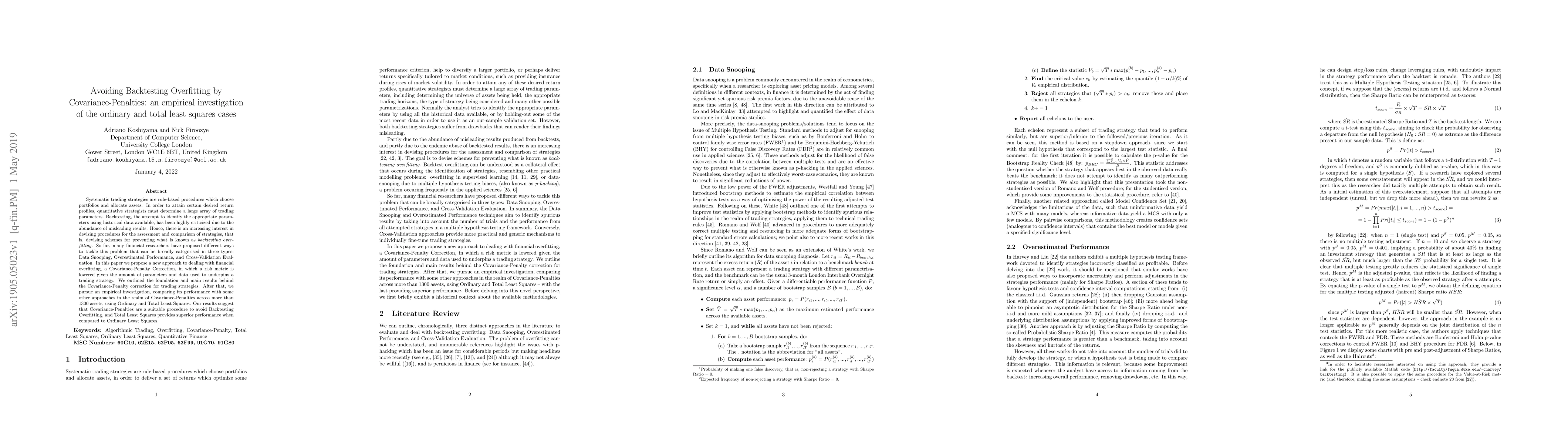 A new approach to preventing backtesting overfitting in trading strategies is proposed using Covariance-Penalty Correction, which lowers a risk metric based on parameters and data used. The study compares its performance with other approaches across 1300 assets and finds that Total Least Squares provides superior results compared to Ordinary Least Squares.