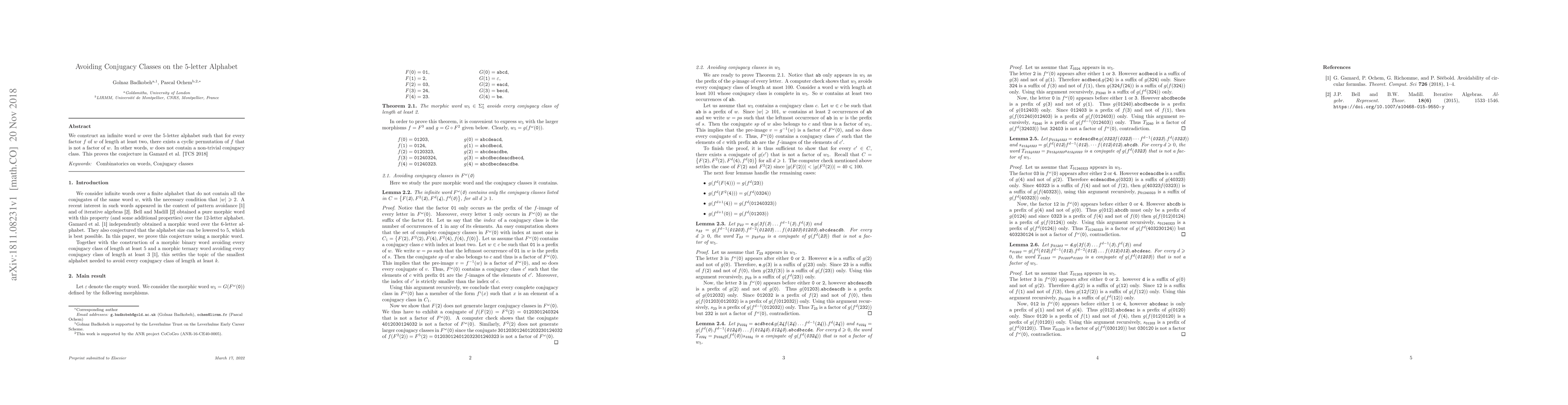 We construct an infinite word $w$ over the $5$-letter alphabet such that for every factor $f$ of $w$ of length at least two, there exists a cyclic permutation of $f$ that is not a factor of $w$. In other words, $w$ does not contain a non-trivial conjugacy class. This proves the conjecture in Gamard et al. [TCS 2018]