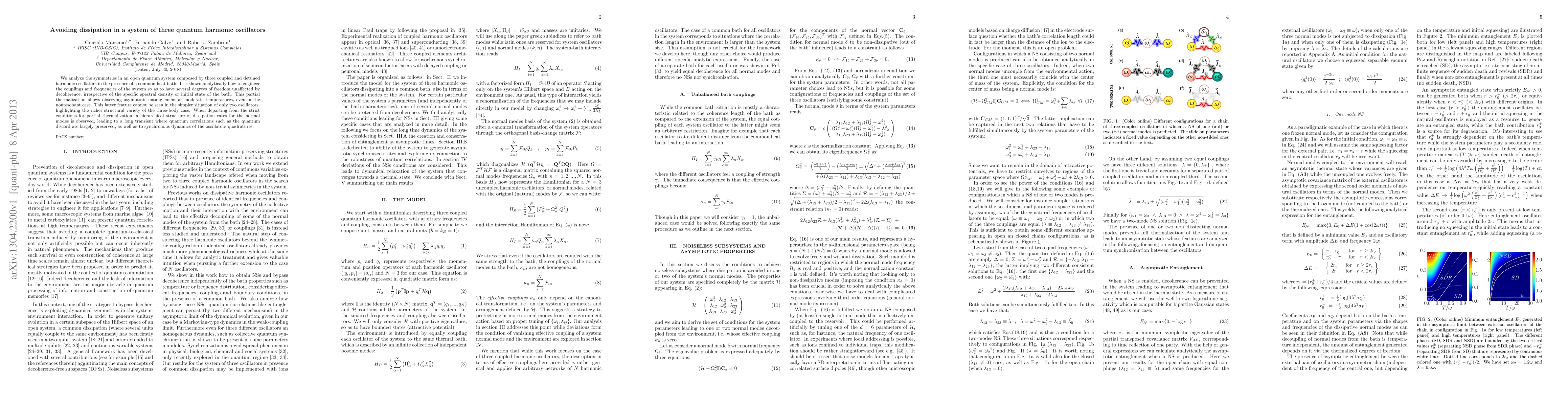 The paper presents a detailed analysis and analytical solutions for engineering a system of three quantum harmonic oscillators to avoid decoherence, highlighting the role of system design in preserving quantum properties in open quantum systems.
