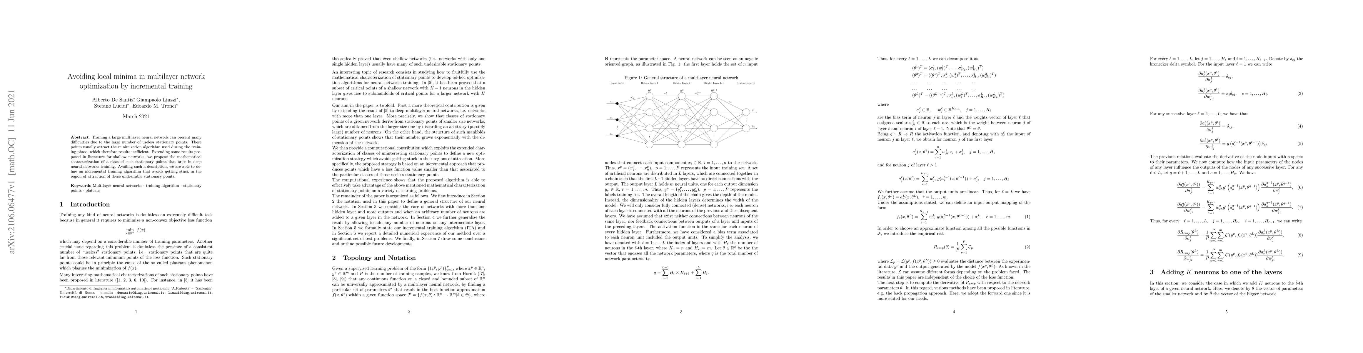 Training a large multilayer neural network can present many difficulties due to the large number of useless stationary points. These points usually attract the minimization algorithm used during the training phase, which therefore results inefficient. Extending some results proposed in literature for shallow networks, we propose the mathematical characterization of a class of such stationary points that arise in deep neural networks training. Availing such a description, we are able to define an incremental training algorithm that avoids getting stuck in the region of attraction of these undesirable stationary points.