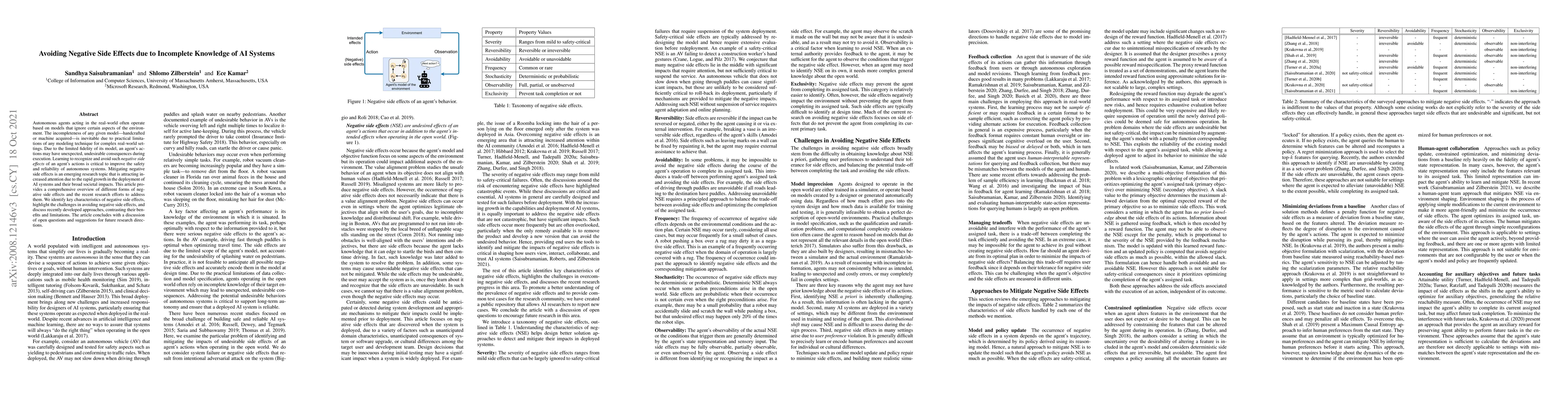 Researchers explored ways to predict and avoid negative side effects of AI systems caused by incomplete knowledge models, highlighting key characteristics and challenges in this emerging field. They discuss recent approaches and open questions for future research directions.