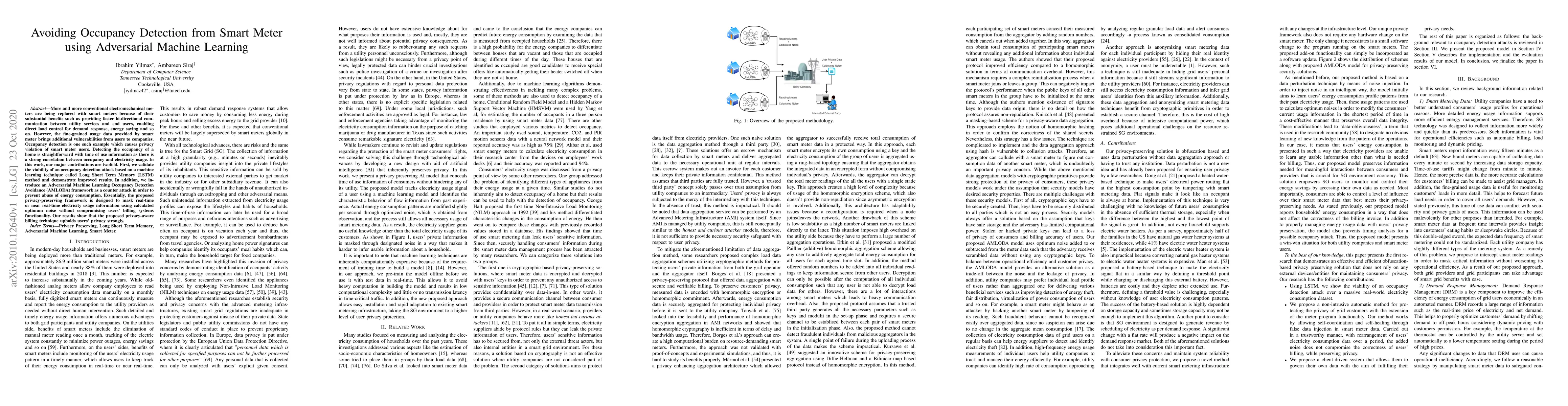 This paper explores the vulnerability of smart meters to occupancy detection through machine learning, specifically using Long Short Term Memory (LSTM) methods. It introduces an Adversarial Machine Learning Occupancy Detection Avoidance (AMLODA) framework to prevent privacy violations by masking electricity usage data with calculated noise, thereby preserving user privacy without affecting billing systems.