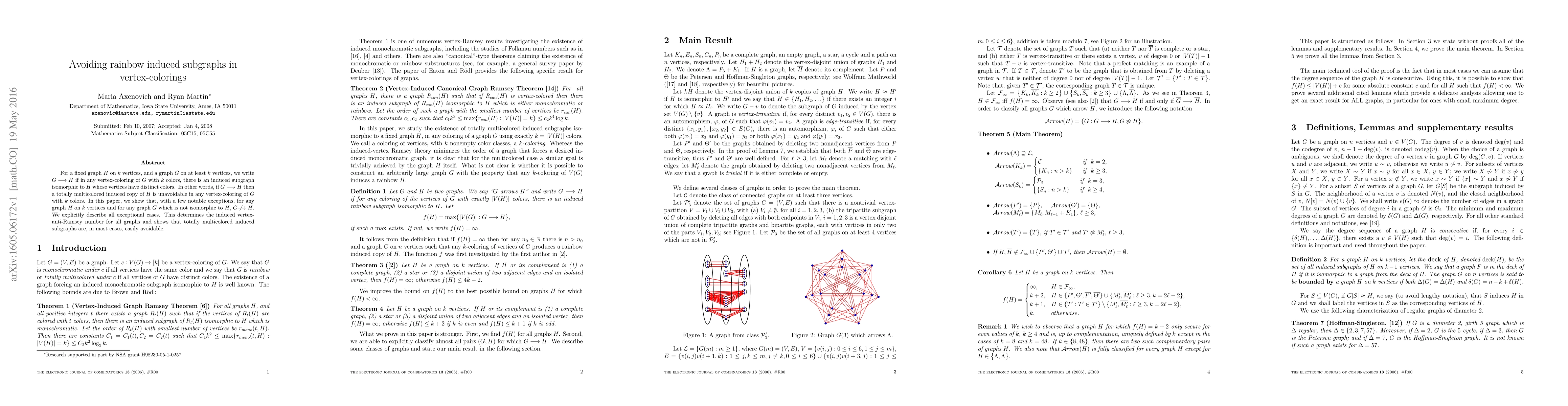 For a fixed graph $H$ on $k$ vertices, and a graph $G$ on at least $k$ vertices, we write $G\rightarrow H$ if in any vertex-coloring of $G$ with $k$ colors, there is an induced subgraph isomorphic to $H$ whose vertices have distinct colors. In other words, if $G\rightarrow H$ then a totally multicolored induced copy of $H$ is unavoidable in any vertex-coloring of $G$ with $k$ colors. In this paper, we show that, with a few notable exceptions, for any graph $H$ on $k$ vertices and for any graph $G$ which is not isomorphic to $H$, $G\not\!\rightarrow H$. We explicitly describe all exceptional cases. This determines the induced vertex-anti-Ramsey number for all graphs and shows that totally multicolored induced subgraphs are, in most cases, easily avoidable.