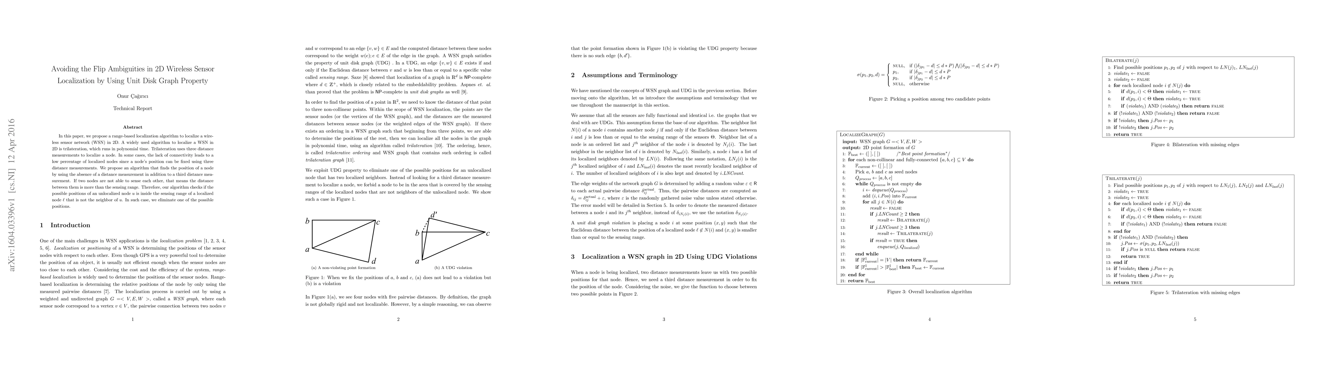 In this paper, we propose a range-based localization algorithm to localize a wireless sensor network (WSN) in 2D. A widely used algorithm to localize a WSN in 2D is trilateration, which runs in polynomial time. Trilateration uses three distance measurements to localize a node. In some cases, the lack of connectivity leads to a low percentage of localized nodes since a node's position can be fixed using three distance measurements. We propose an algorithm that finds the position of a node by using the absence of a distance measurement in addition to a third distance measurement. If two nodes are not able to sense each other, that means the distance between them is more than the sensing range. Therefore, our algorithm checks if the possible positions of an unlocalized node $u$ is inside the sensing range of a localized node $\ell$ that is not the neighbor of $u$. In such case, we eliminate one of the possible positions.
