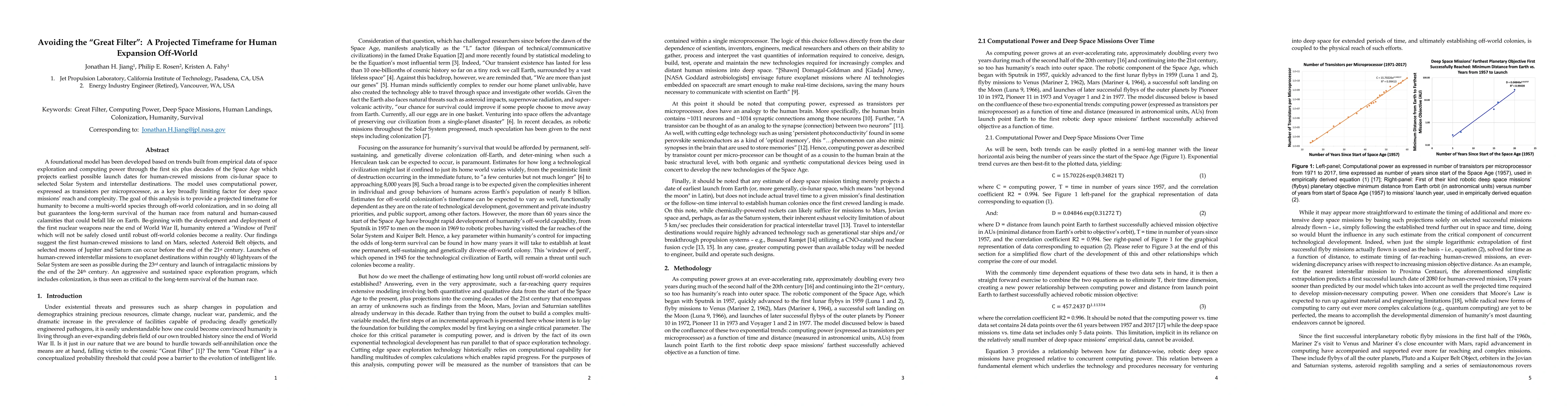 A foundational model has been developed based on trends built from empirical data of space exploration and computing power through the first six plus decades of the Space Age which projects earliest possible launch dates for human-crewed missions from cis-lunar space to selected Solar System and interstellar destinations. The model uses computational power, expressed as transistors per microprocessor, as a key broadly limiting factor for deep space missions' reach and complexity. The goal of this analysis is to provide a projected timeframe for humanity to become a multi-world species through off-world colonization, and in so doing all but guarantees the long-term survival of the human race from natural and human-caused calamities that could befall life on Earth. Be-ginning with the development and deployment of the first nuclear weapons near the end of World War II, humanity entered a 'Window of Peril' which will not be safely closed until robust off-world colonies become a reality. Our findings suggest the first human-crewed missions to land on Mars, selected Asteroid Belt objects, and selected moons of Jupiter and Saturn can occur before the end of the 21st century. Launches of human-crewed interstellar missions to exoplanet destinations within roughly 40 lightyears of the Solar System are seen as possible during the 23rd century and launch of intragalactic missions by the end of the 24th century. An aggressive and sustained space exploration program, which includes colonization, is thus seen as critical to the long-term survival of the human race.