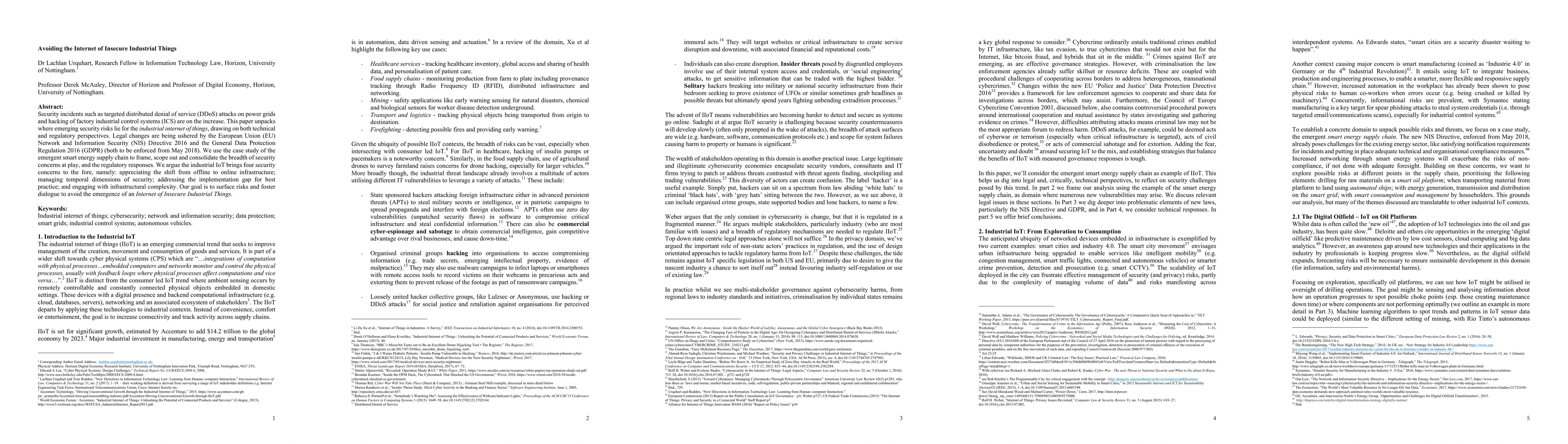 The paper unpacks security risks for the industrial internet of things (IIoT) from both technical and regulatory perspectives, using the smart energy supply chain as a case study.
