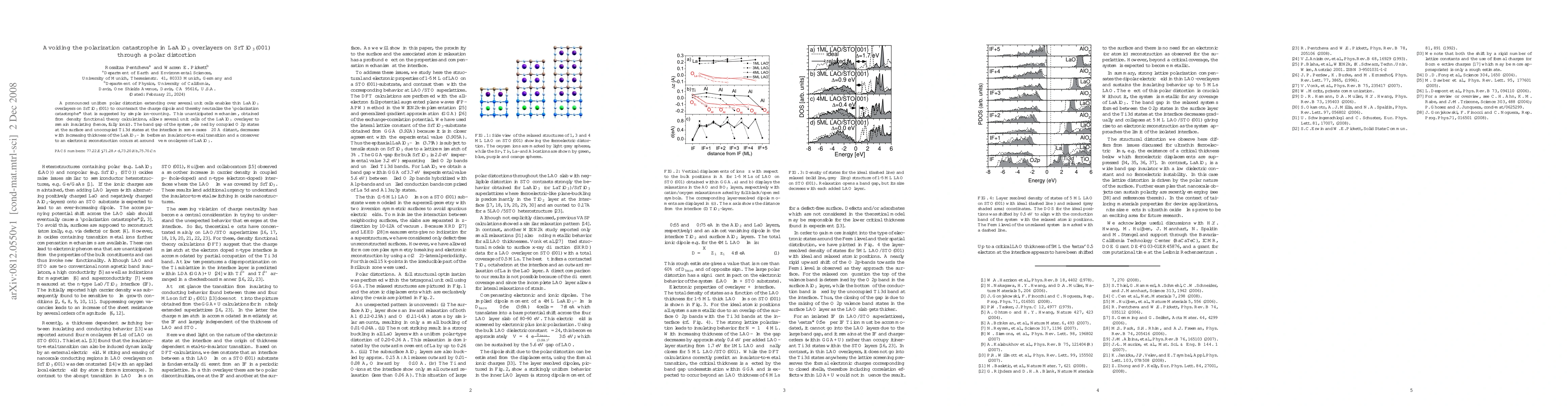 The study reveals that a uniform polar distortion in LaAlO3 overlayers on SrTiO3(001) neutralizes the "polarization catastrophe," maintaining the overlayer's insulating properties through density functional theory calculations. As the thickness increases, the band gap decreases until an insulator-to-metal transition occurs around five monolayers.