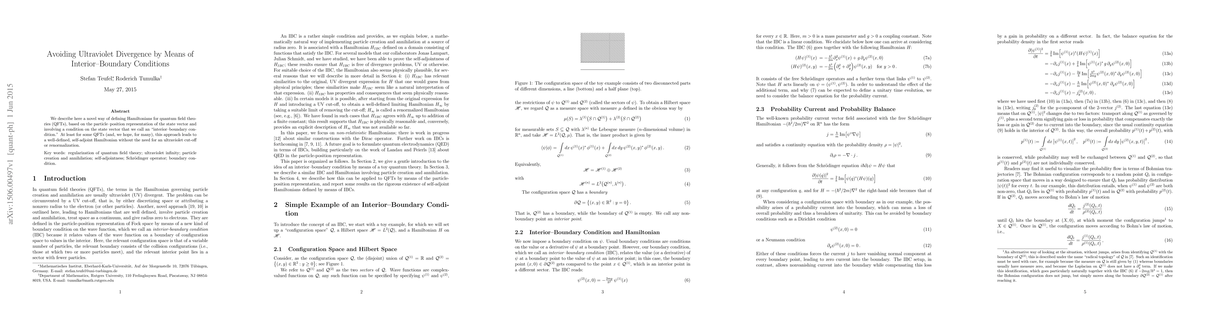 Researchers developed a new method to define Hamiltonians for quantum field theories without needing an ultraviolet cut-off, using interior-boundary conditions that lead to self-adjoint Hamiltonians.
