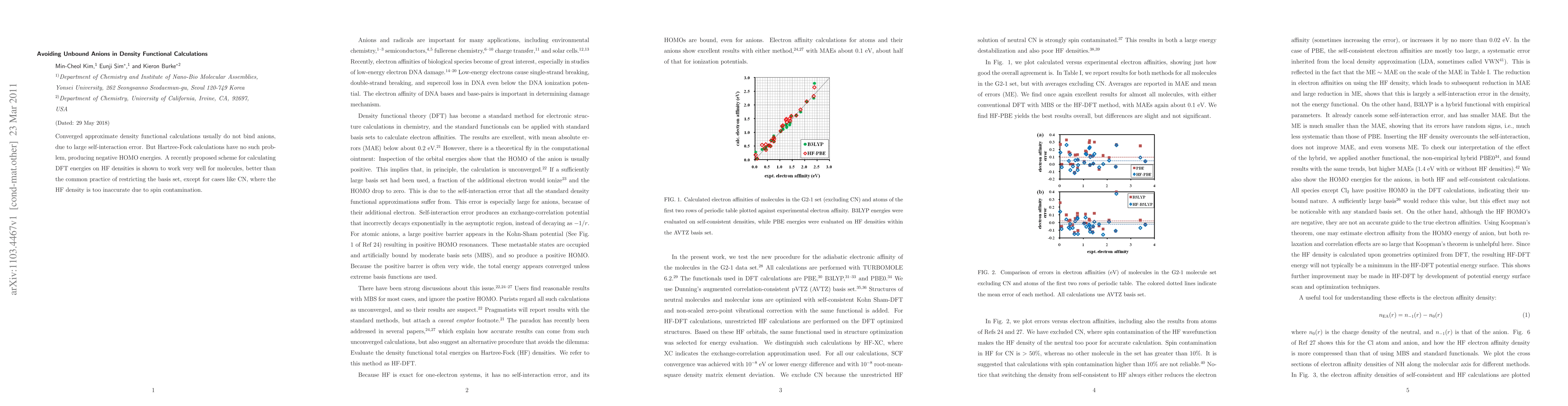 Converged approximate density functional calculations usually do not bind anions, due to large self-interaction error. But Hartree-Fock calculations have no such prob- lem, producing negative HOMO energies. A recently proposed scheme for calculating DFT energies on HF densities is shown to work very well for molecules, better than the common practice of restricting the basis set, except for cases like CN, where the HF density is too inaccurate due to spin contamination.