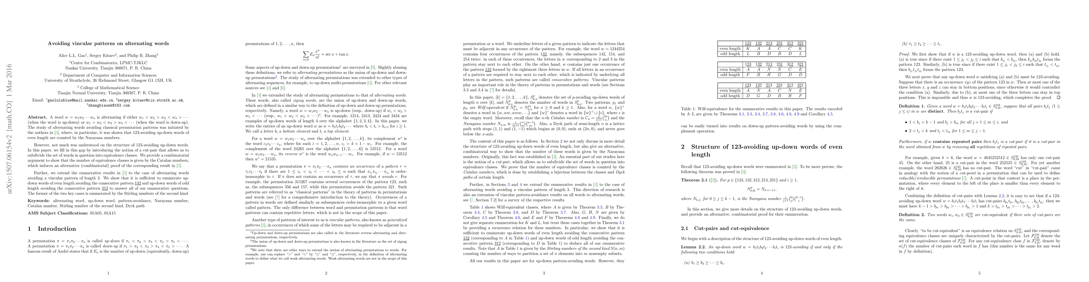 A word $w=w_1w_2\cdots w_n$ is alternating if either $w_1