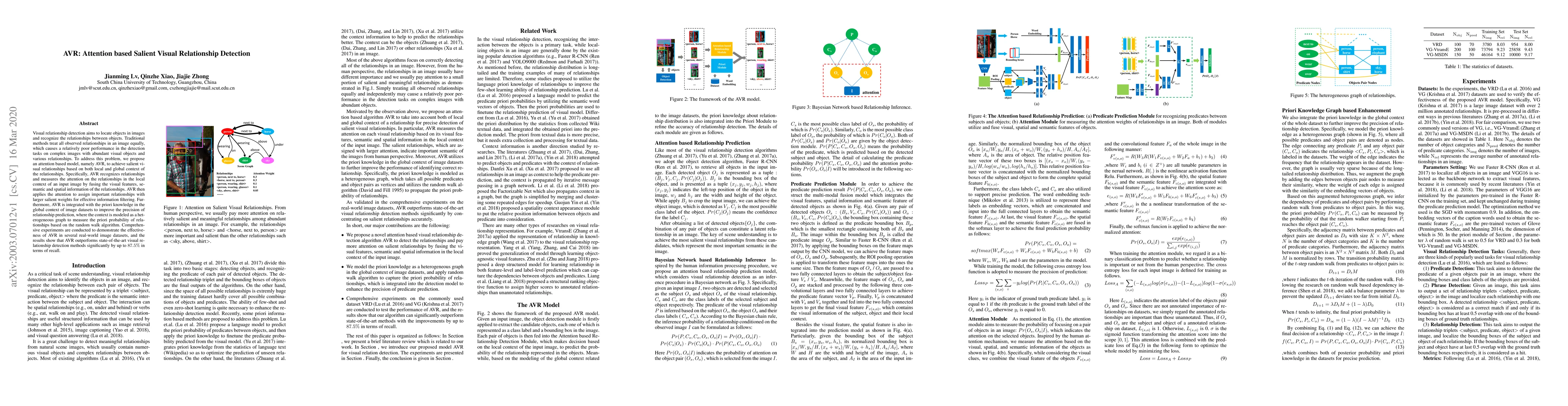 The paper proposes AVR, an attention-based model for salient visual relationship detection, which uses local context to focus on important relationships and global context to leverage dataset-specific prior knowledge, achieving superior performance over existing methods. Experiments show AVR significantly improves recall by up to 87.5%.