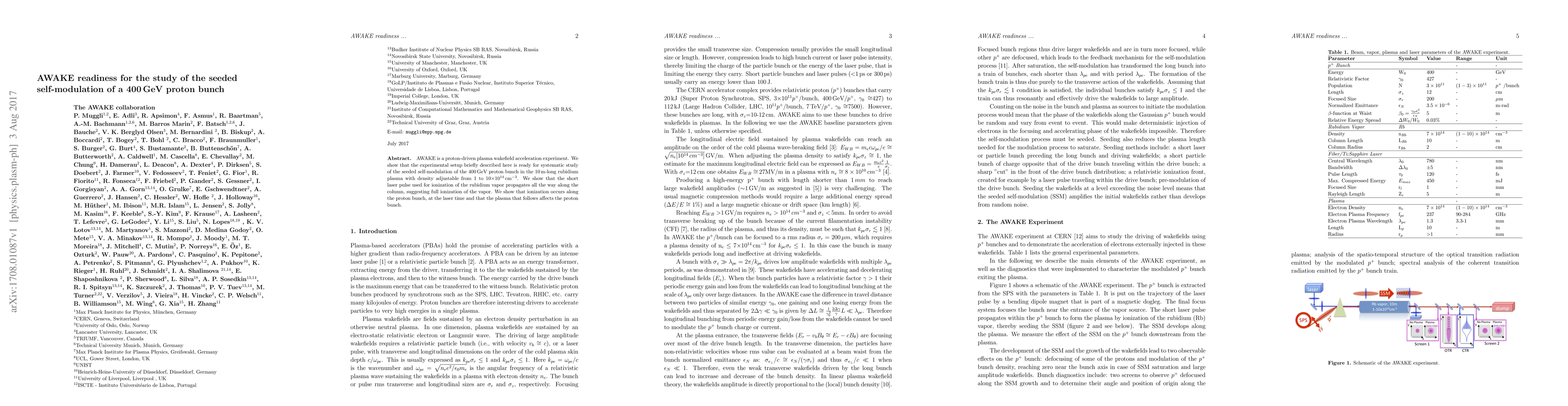 AWAKE is a proton-driven plasma wakefield acceleration experiment. % We show that the experimental setup briefly described here is ready for systematic study of the seeded self-modulation of the 400\,GeV proton bunch in the 10\,m-long rubidium plasma with density adjustable from 1 to 10$\times10^{14}$\,cm$^{-3}$. % We show that the short laser pulse used for ionization of the rubidium vapor propagates all the way along the column, suggesting full ionization of the vapor. % We show that ionization occurs along the proton bunch, at the laser time and that the plasma that follows affects the proton bunch. %