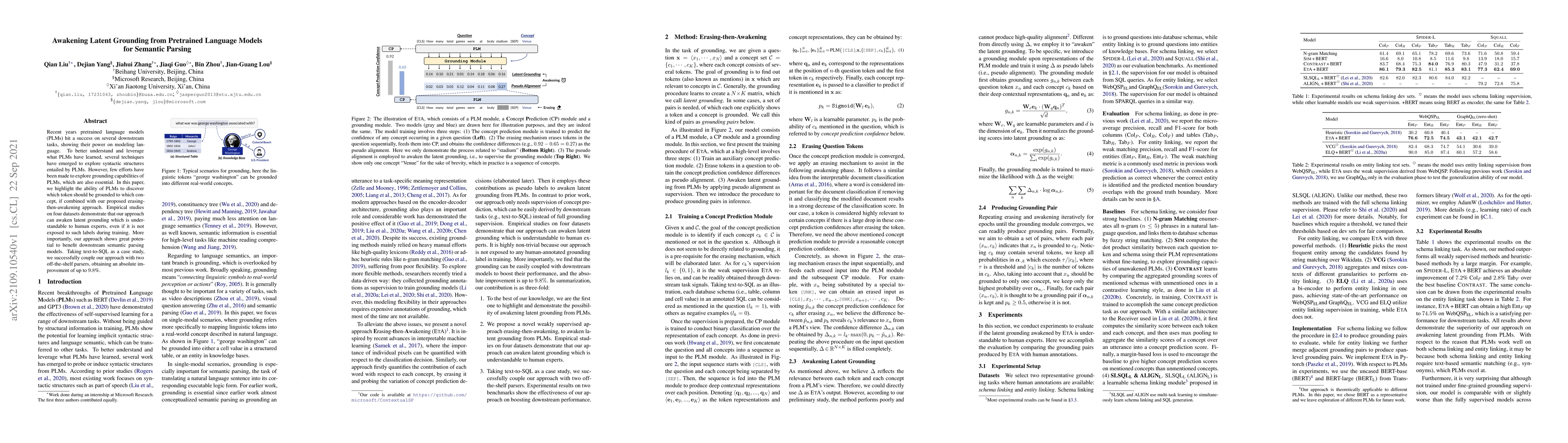 Recent years pretrained language models (PLMs) hit a success on several downstream tasks, showing their power on modeling language. To better understand and leverage what PLMs have learned, several techniques have emerged to explore syntactic structures entailed by PLMs. However, few efforts have been made to explore grounding capabilities of PLMs, which are also essential. In this paper, we highlight the ability of PLMs to discover which token should be grounded to which concept, if combined with our proposed erasing-then-awakening approach. Empirical studies on four datasets demonstrate that our approach can awaken latent grounding which is understandable to human experts, even if it is not exposed to such labels during training. More importantly, our approach shows great potential to benefit downstream semantic parsing models. Taking text-to-SQL as a case study, we successfully couple our approach with two off-the-shelf parsers, obtaining an absolute improvement of up to 9.8%.