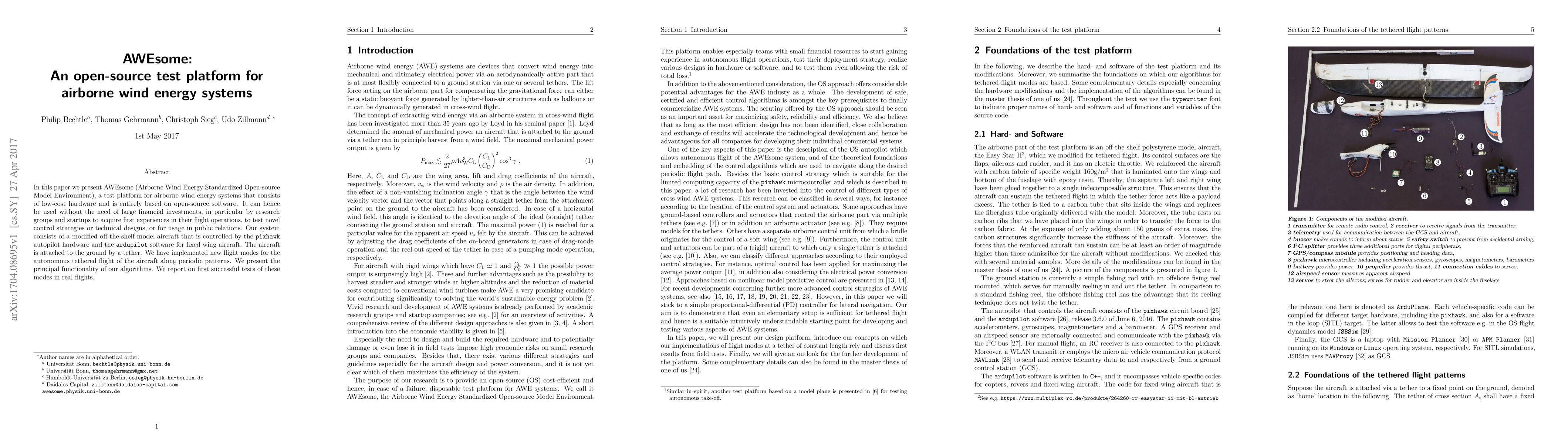 This paper introduces AWEsome, an open-source test platform for airborne wind energy systems, featuring low-cost hardware and open-source software to facilitate research and public relations. The platform uses a modified model aircraft with pixhawk autopilot and ardupilot software, successfully implementing autonomous tethered flight patterns.