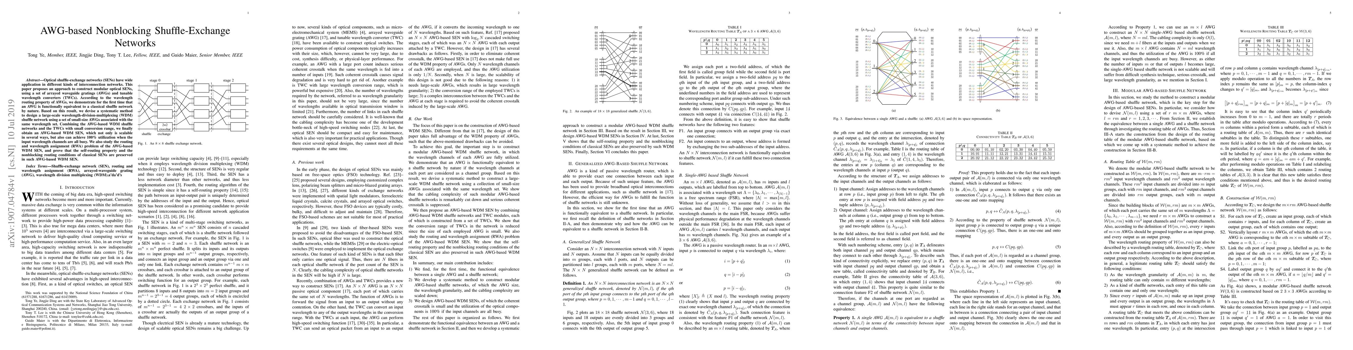 This paper proposes a scalable optical shuffle-exchange network (SEN) using arrayed waveguide gratings (AWGs) and tunable wavelength converters (TWCs), demonstrating that AWGs can function as classical shuffle networks. The approach achieves 100% utilization under busy conditions and preserves self-routing and nonblocking properties.