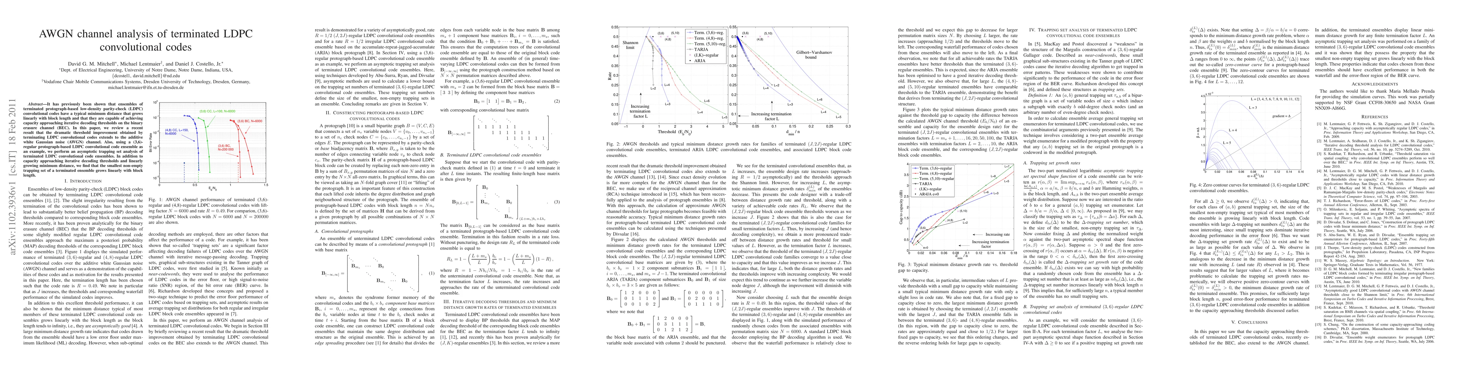 It has previously been shown that ensembles of terminated protograph-based low-density parity-check (LDPC) convolutional codes have a typical minimum distance that grows linearly with block length and that they are capable of achieving capacity approaching iterative decoding thresholds on the binary erasure channel (BEC). In this paper, we review a recent result that the dramatic threshold improvement obtained by terminating LDPC convolutional codes extends to the additive white Gaussian noise (AWGN) channel. Also, using a (3,6)-regular protograph-based LDPC convolutional code ensemble as an example, we perform an asymptotic trapping set analysis of terminated LDPC convolutional code ensembles. In addition to capacity approaching iterative decoding thresholds and linearly growing minimum distance, we find that the smallest non-empty trapping set of a terminated ensemble grows linearly with block length.
