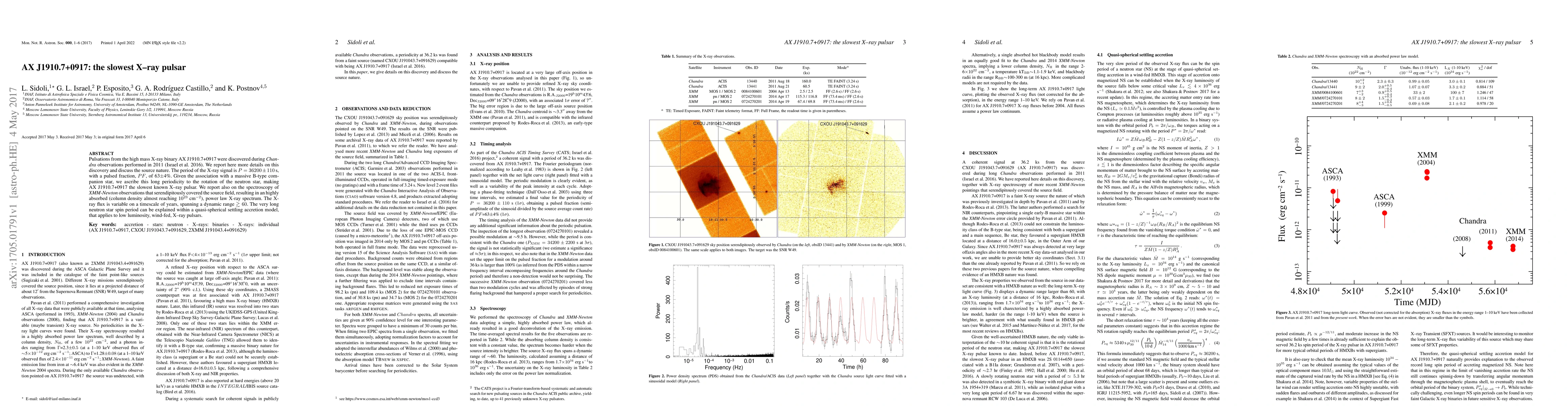The X-ray pulsar AXJ1910.7+0917 has the slowest known rotation period of 36,200 seconds, making it the slowest X-ray pulsar. Its variable X-ray flux is driven by a quasi-spherical settling accretion model that applies to low luminosity, wind-fed X-ray pulsars.