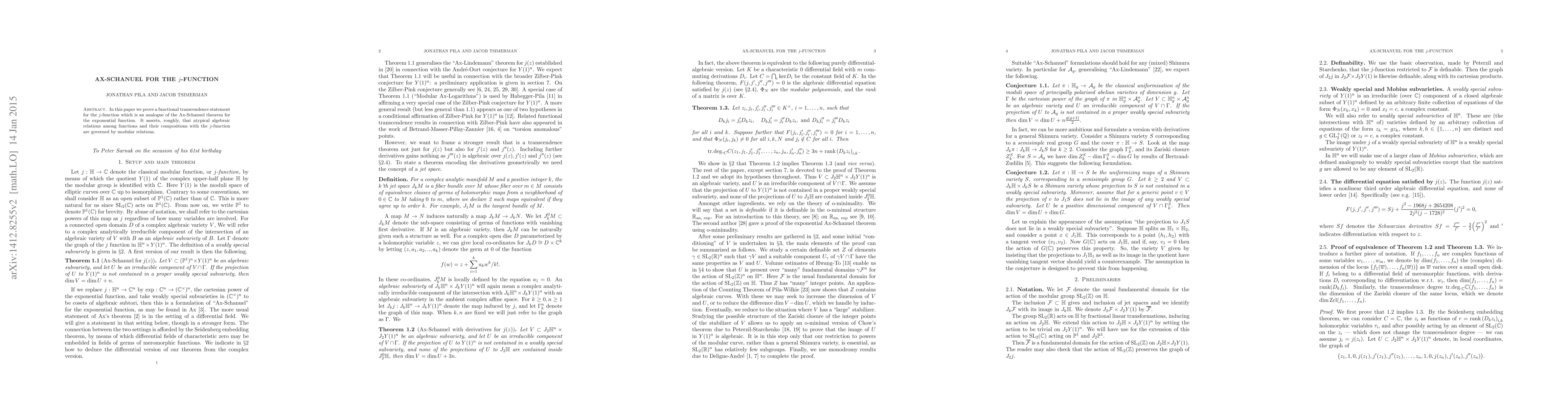 Summary: This paper establishes a functional transcendence statement for the j-function, analogous to the Ax-Schanuel theorem for the exponential function, asserting that unusual algebraic relations involving the j-function and its compositions are constrained by modular relations.