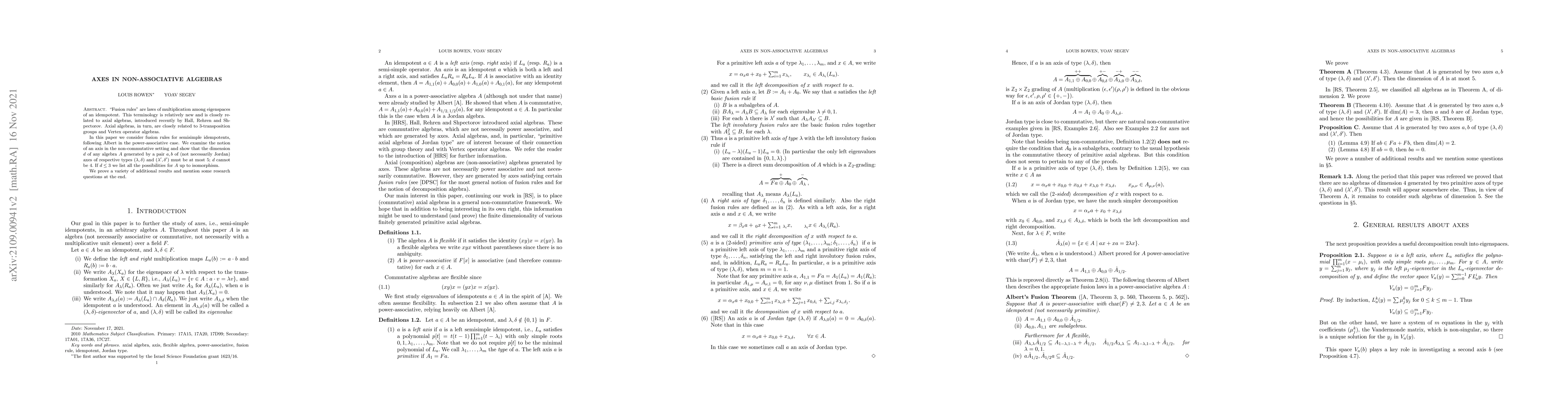 "Fusion rules" are laws of multiplication among eigenspaces of an idempotent. This terminology is relatively new and is closely related to axial algebras, introduced recently by Hall, Rehren and Shpectorov. Axial algebras, in turn, are closely related to $3$-transposition groups and Vertex operator algebras. In this paper we consider fusion rules for semisimple idempotents, following Albert in the power-associative case. We examine the notion of an axis in the non-commutative setting and show that the dimension $d$ of any algebra $A$ generated by a pair $a,b$ of (not necessarily Jordan) axes of respective types $(\lambda,\delta)$ and $(\lambda',\delta')$ must be at most $5$; $d$ cannot be $4.$ If $d\le 3$ we list all the possibilities for $A$ up to isomorphism. We prove a variety of additional results and mention some research questions at the end.