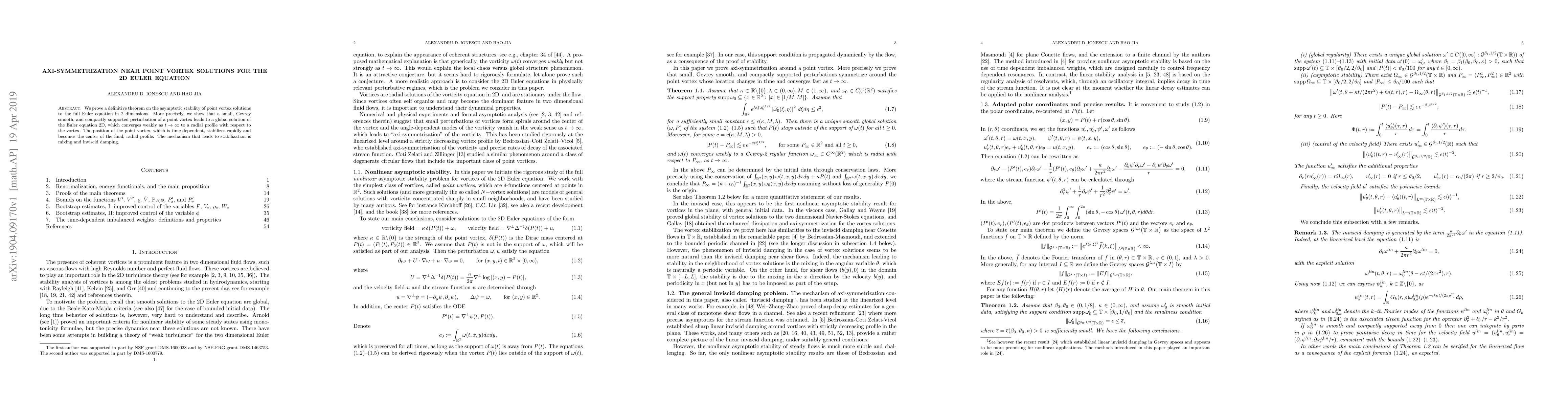 Researchers prove that a small perturbation of a point vortex in 2D Euler equation leads to a global solution that converges to a radial profile with the vortex at its center.